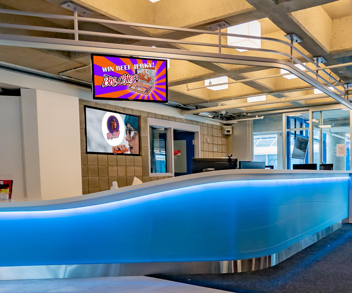 Big Chief has the opportunity to share their digital brand collateral (e.g. commercial advertising/videos) using our three jumbo Screens, lobby LED screens. Each of these screens is used for partners and sponsors and messaging throughout the season during recreational public skating and running times. Additionally, our social media channels and Oval Guest services newsletter are available to help promote sales and revenue, planned activations and brand awareness contests.